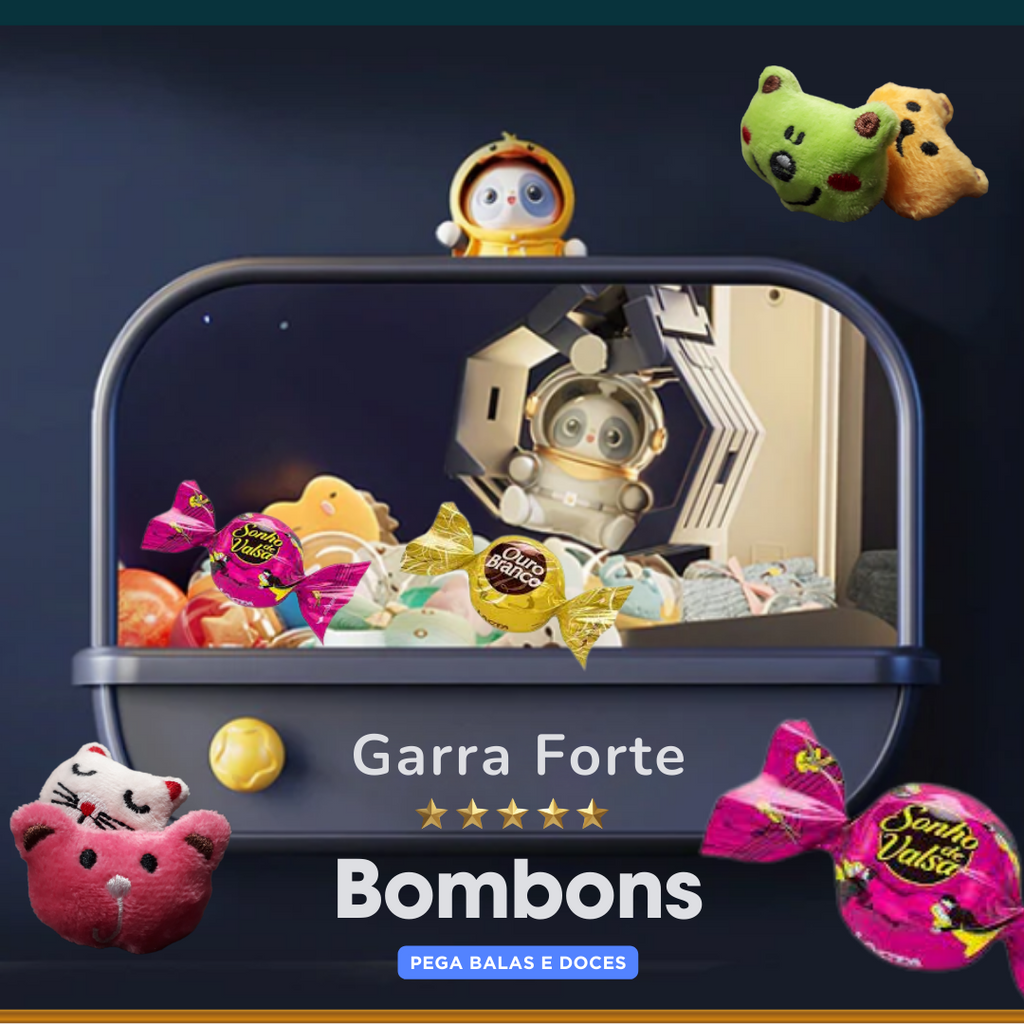 Você pode colocar uma variedade de itens leves na cabine para aumentar a diversão. Doces, chicletes, pequenos brinquedos, animais de pelúcia - a escolha é sua. Lembre-se, opte por itens leves para garantir o funcionamento ideal da garra.